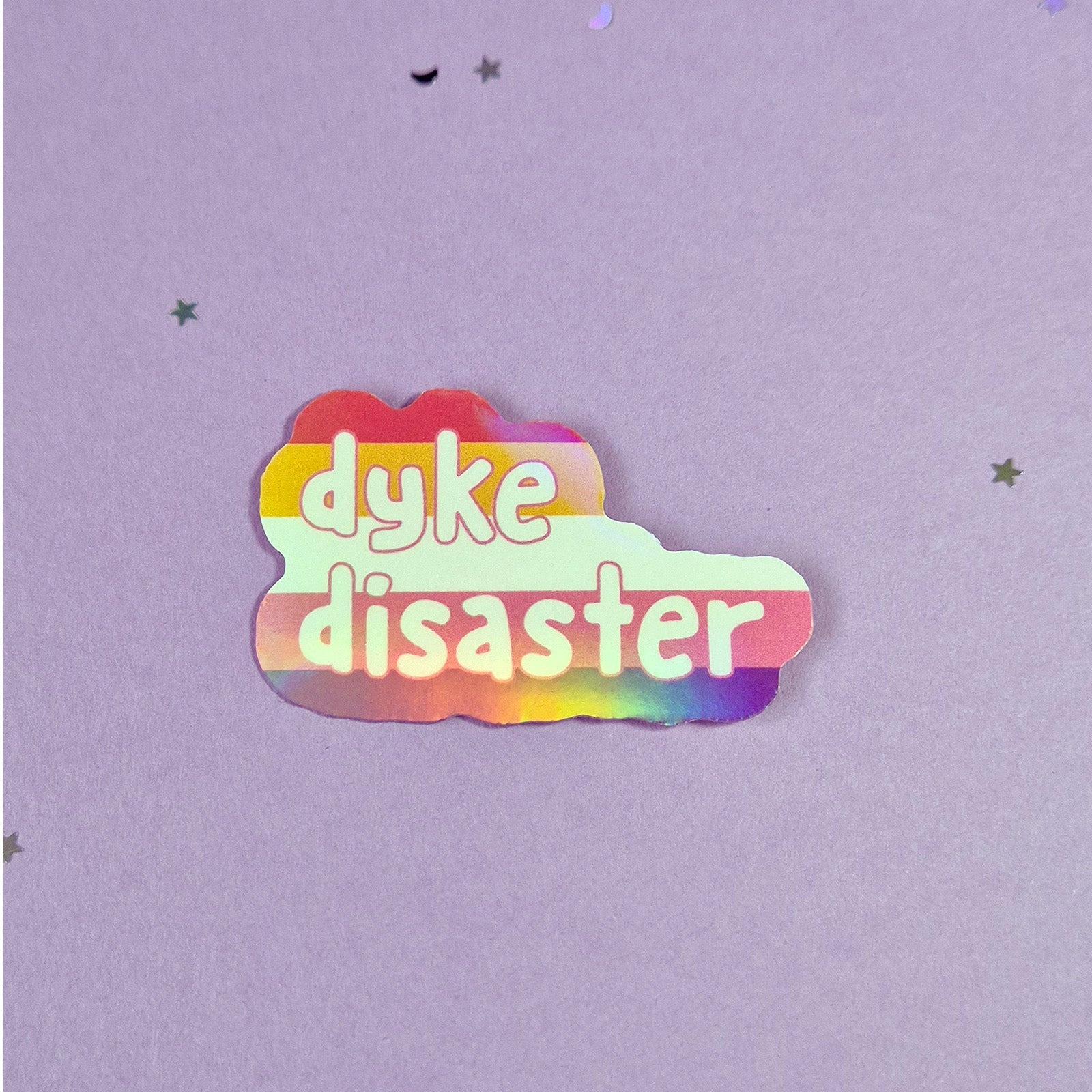 A sticker for a disaster! What kind of disaster? The kind that’s unapologetically a dyke!
