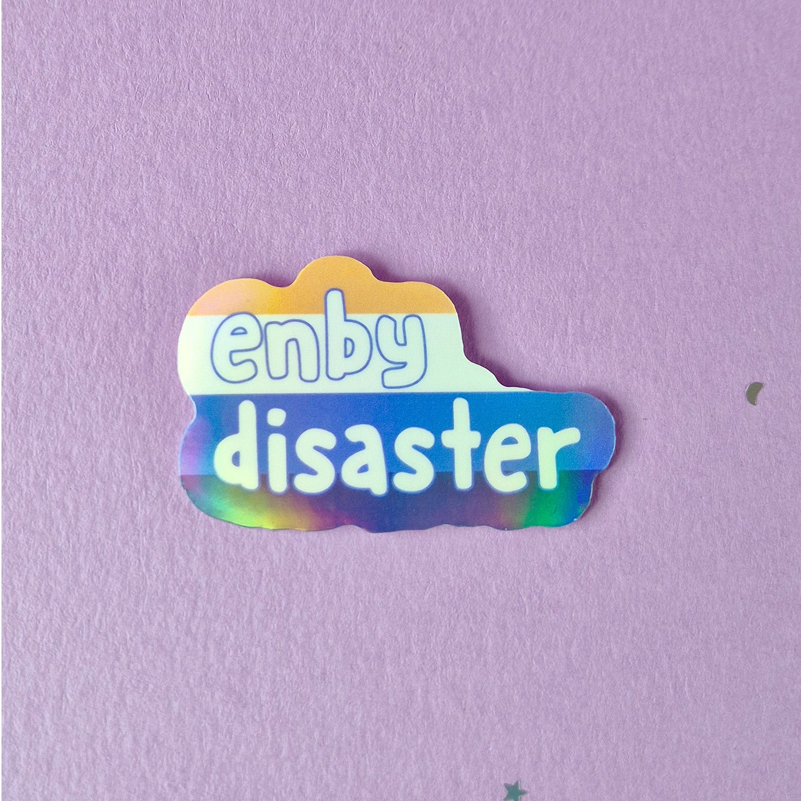 A sticker for a disaster! What kind of disaster? The kind that doesn’t let society define their gender – but they’re a disaster!