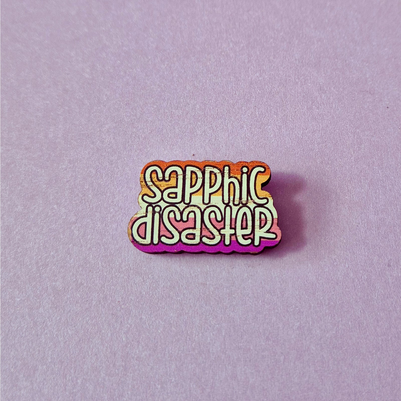 A wooden pin for people who have a lot of feelings about ladies and lady-adjacent people.